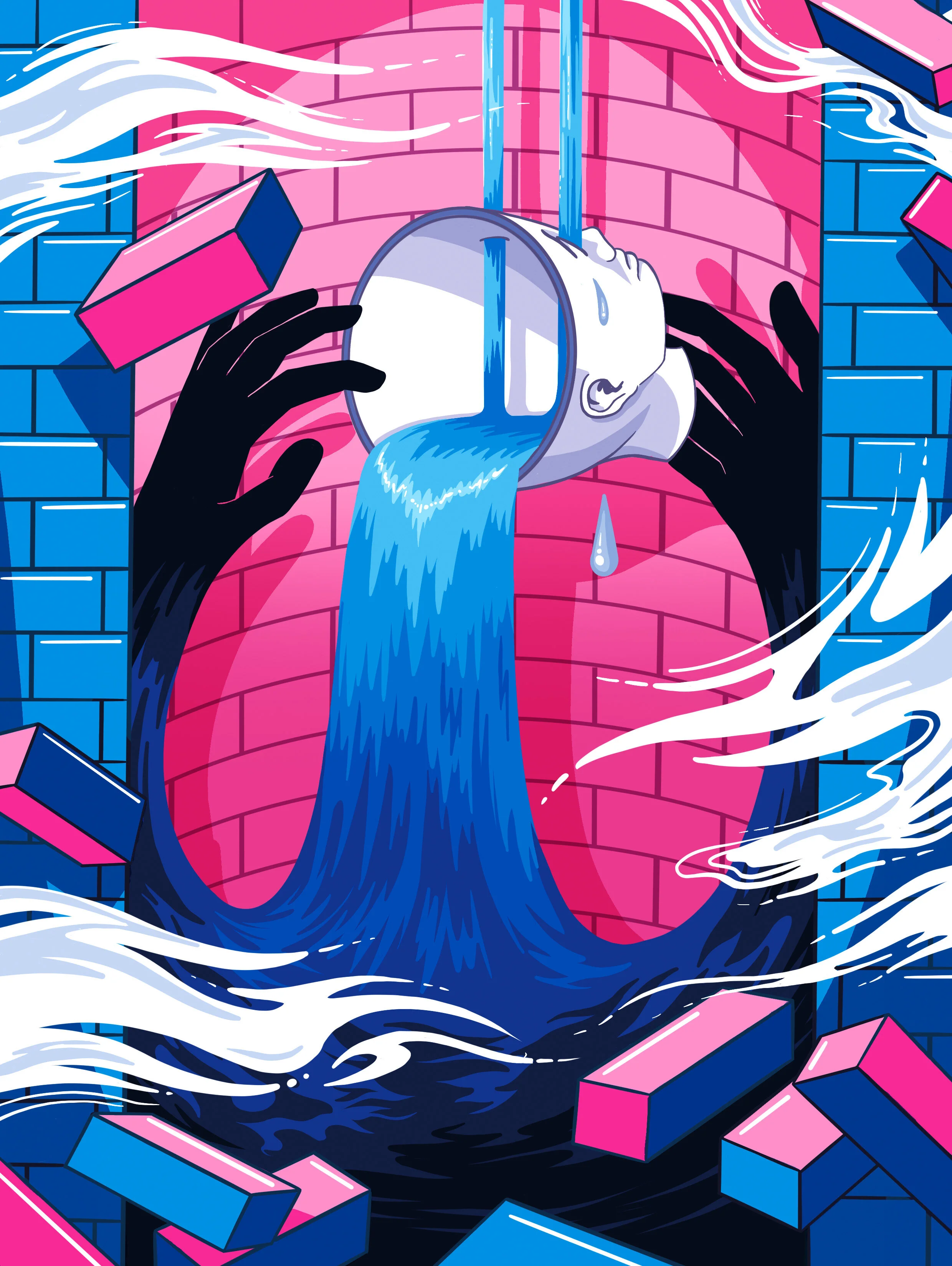 The piece was then exhibited at Fulham town hall, among the other collaborations where a secondary collaboration between David Oku and I, came about. Where we were let loose in a room specially given to us to create a huge mural further raising mental health awareness.
